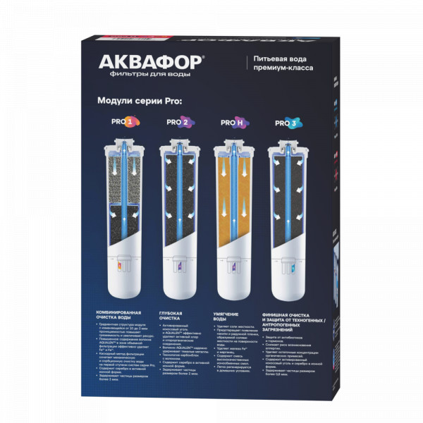 Три модуля системы АКВАФОР Baby Н Pro — Pro 1, Pro Н и Pro 3 обеспечивают тонкую сорбционную фильтрацию, которая гарантирует полное удаление остаточных количеств фармацевтических препаратов (гормонов и антибиотиков), а также умягчают воду средней жесткости. Система удаляет хлор, тяжелые металлы, пестициды, нефтепродукты и распространенные токсины и аллергены.