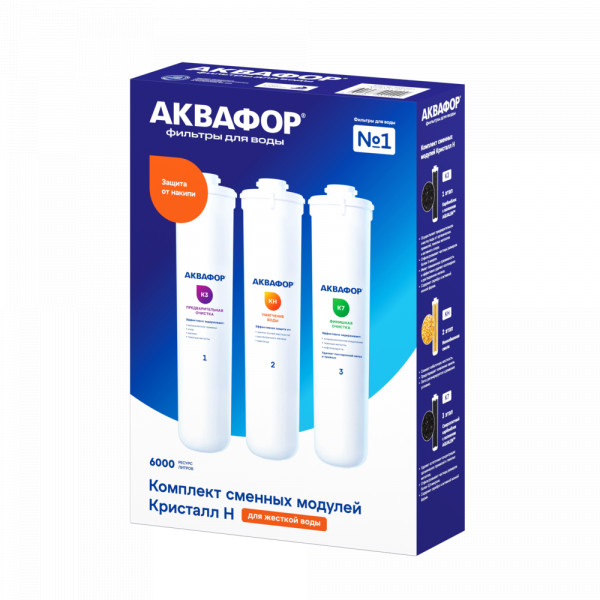 Комплект сменных модулей глубокой очистки и умягчения воды низкой и средней жесткости. Эффективно снижает появление белого налета, модуль с ионообменной смолой подлежит регенерации. В зависимости от жесткости исходной воды, регенерацию потребуется проводить в срок до 3х месяцев.