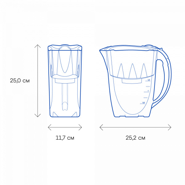 Объем воронки, л1,4Применениедля холодной водыОбъем кувшина, л2,8Помещается в дверцу холодильниканетКрышкаслайдерСчётчик замены модулямеханическийРесурс модуля, л350